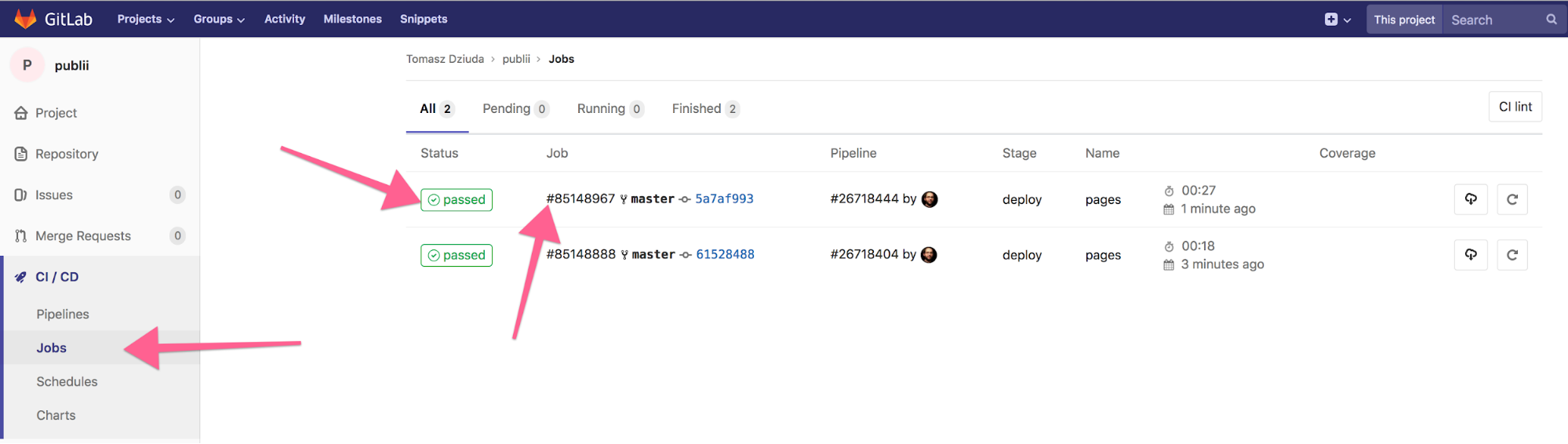 Then, instead of duplicating the URL as testname.gitlab.io/testname, GitLab will simplify the URL to testname.gitlab.io only.