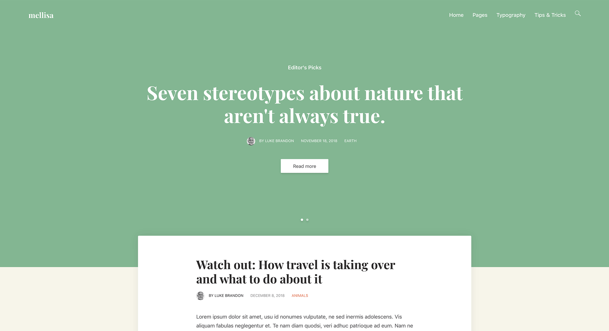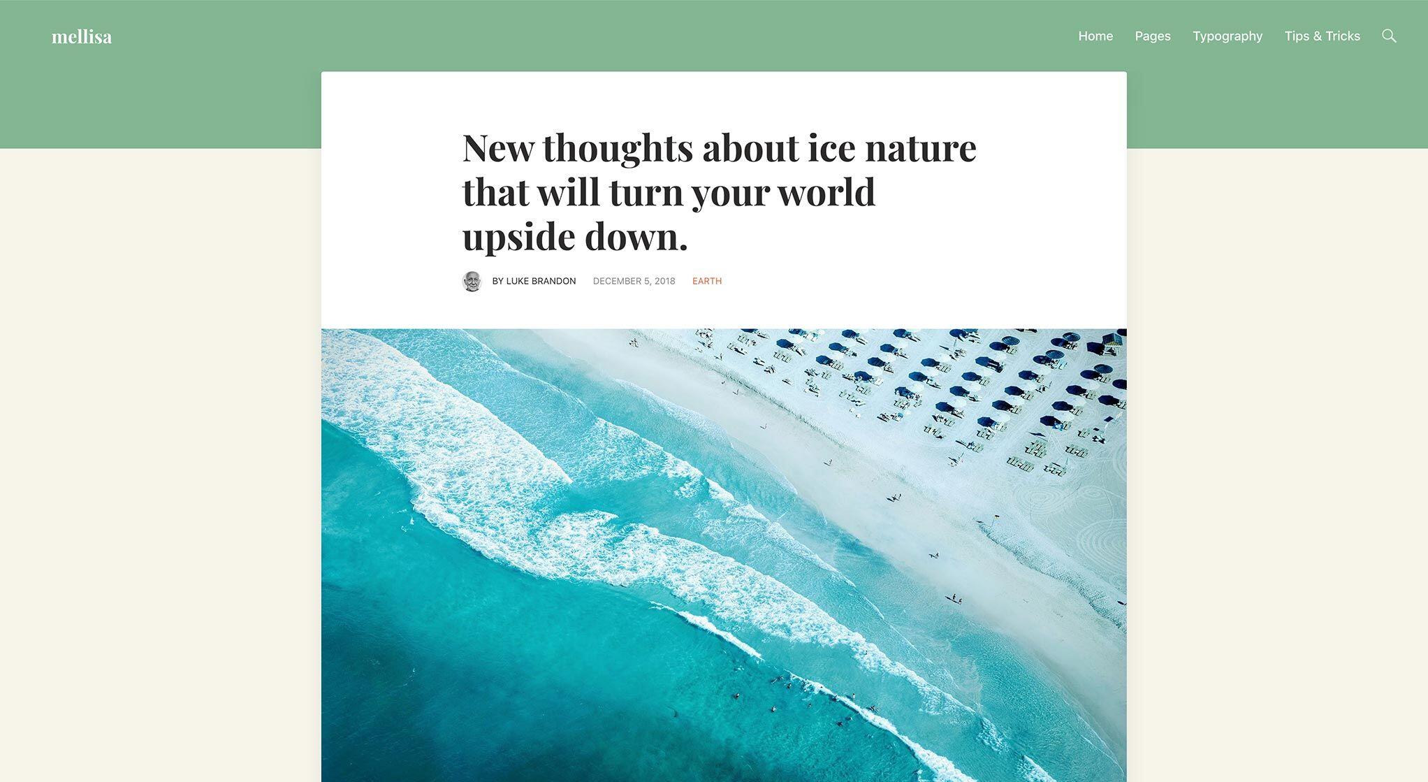 Repetitive pages can get a bit boring, so to make each part of your site unique and identifiable we’ve included three different templates for Mellisa’s post and pages, and two for tag and author pages, allowing you to give each type a sense of identity so that users know exactly where they are on your site.