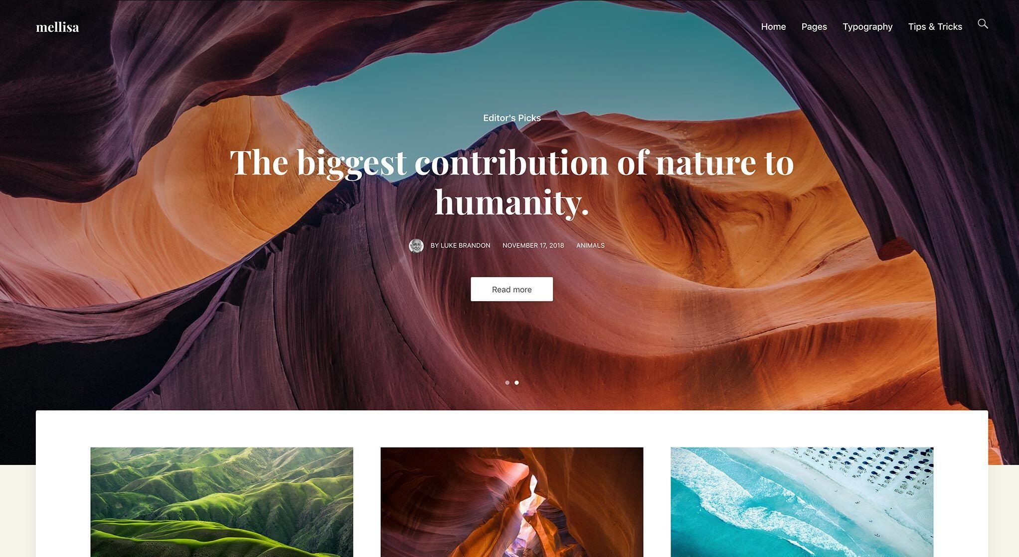 Capture your stories, adventures, and insights with the Mellisa theme - a versatile companion that makes your content the focal point, whether it's travel tales, personal reflections, or technical tips. The flexible Hero section lets you feature your favorite posts - whether the latest articles, specific tags, or curated selections - creating an engaging homepage that draws readers in. The built-in modern slider adds a sleek visual element to highlight key content, while Dark Mode and customizable layouts provide your audience with an intuitive and stylish reading experience. With a focus on readability, performance, and design flexibility, Mellisa helps you craft a blog that feels authentic and professional.